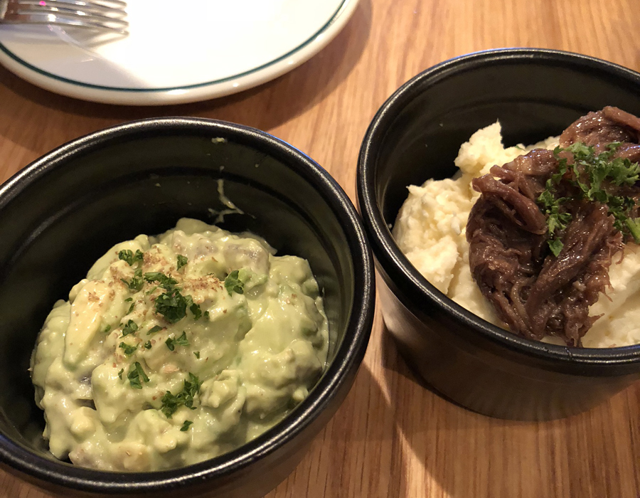 「牛テール煮込みのせポテトサラダ」と「マグロとアボガドのタルタル」。