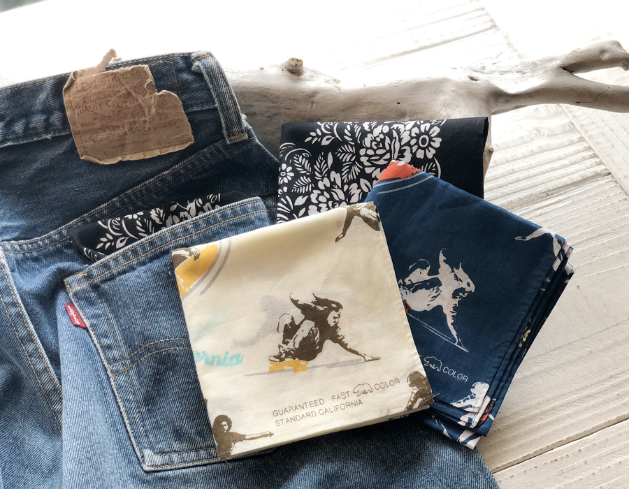 バンダナの中でも店舗限定のフラワー柄やまもなく入荷予定の新作Skaters Bandanaはいかがですか。