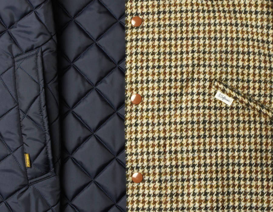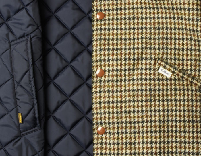 ハリスツイードと乗馬用のトレーニングウェアなどに使われていた歴史のあるダイアモンドキルティングのリバーシブル。