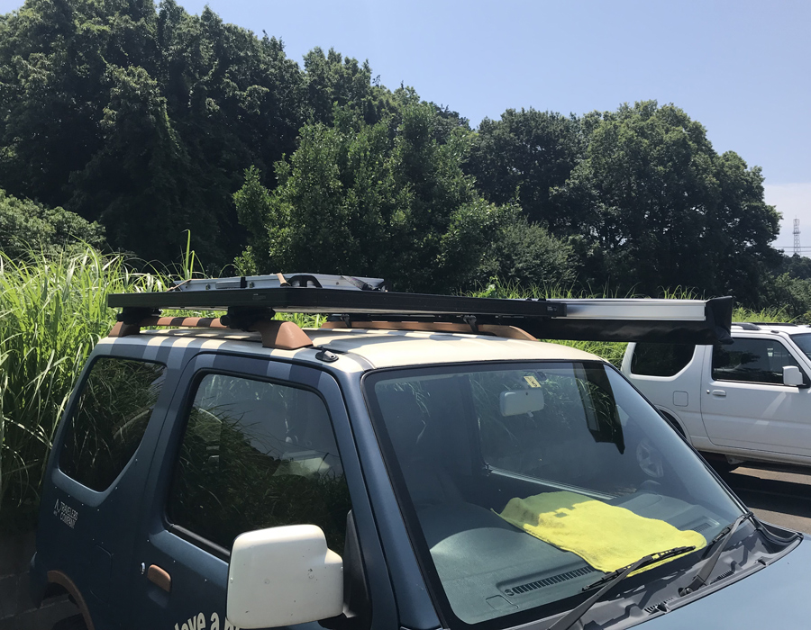 ルーフラックに荷物を山積みにしてミニマムなキャンプなんていいですよ!