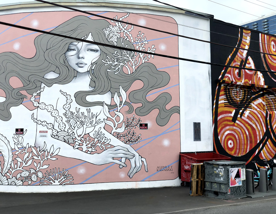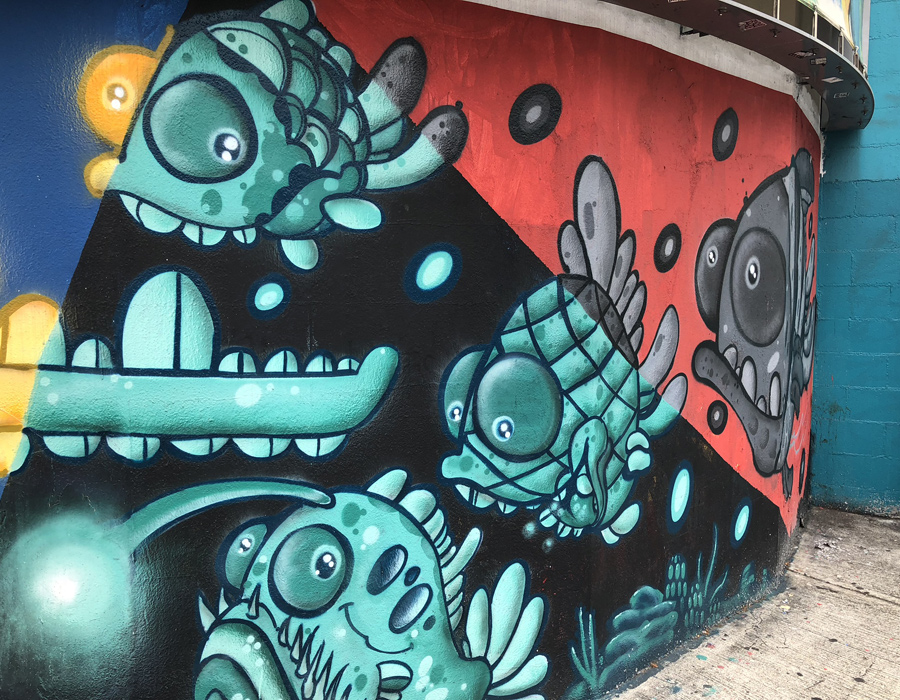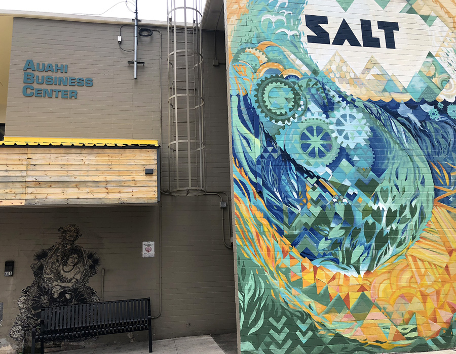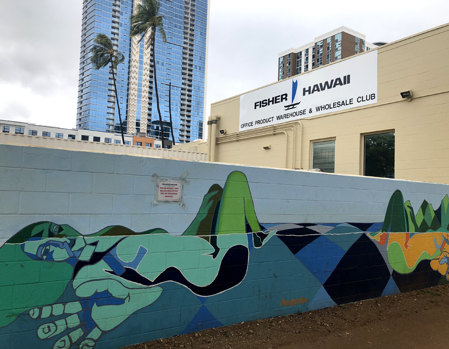 この「FISHER HAWAII」のあるカカアコは、近年ウォールアートで人気のエリア。
