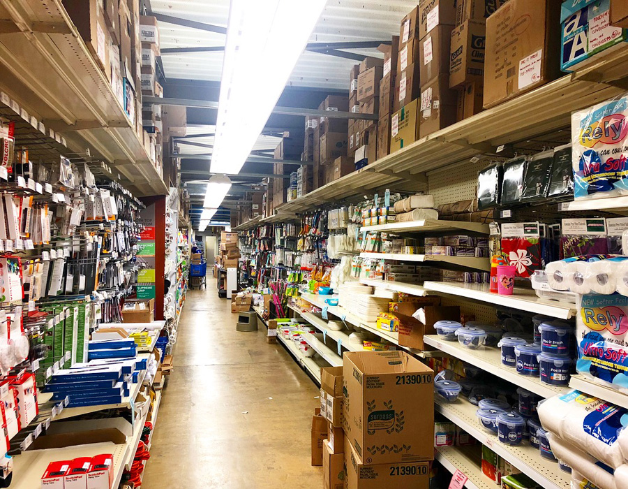 文房具を中心にオフィス家具や生活雑貨を専門に扱う倉庫型店舗。