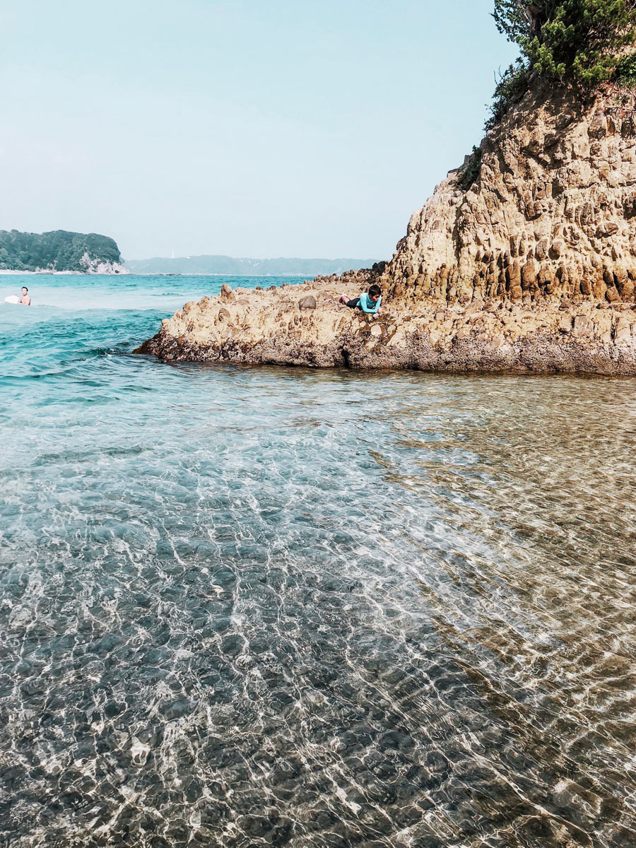海の透明度とビーチの雰囲気を重視し、下調べをして選んだのは南伊豆の入田浜。