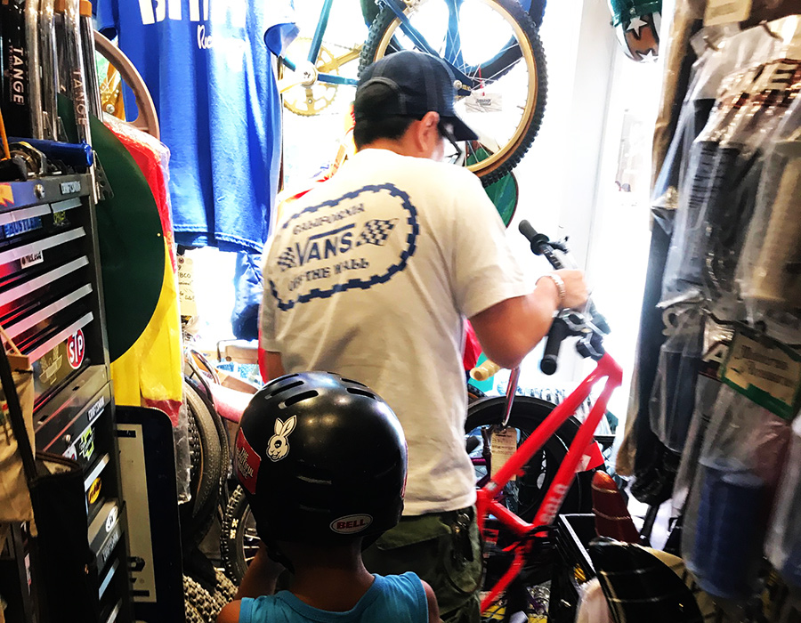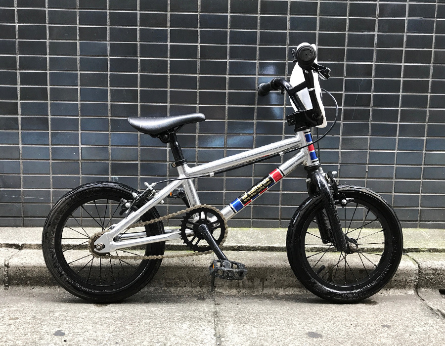 以前、Screamin’ Wheelsさんで組んでもらった子供用のこのBMXがいよいよ小さくなり、井上さんに相談。