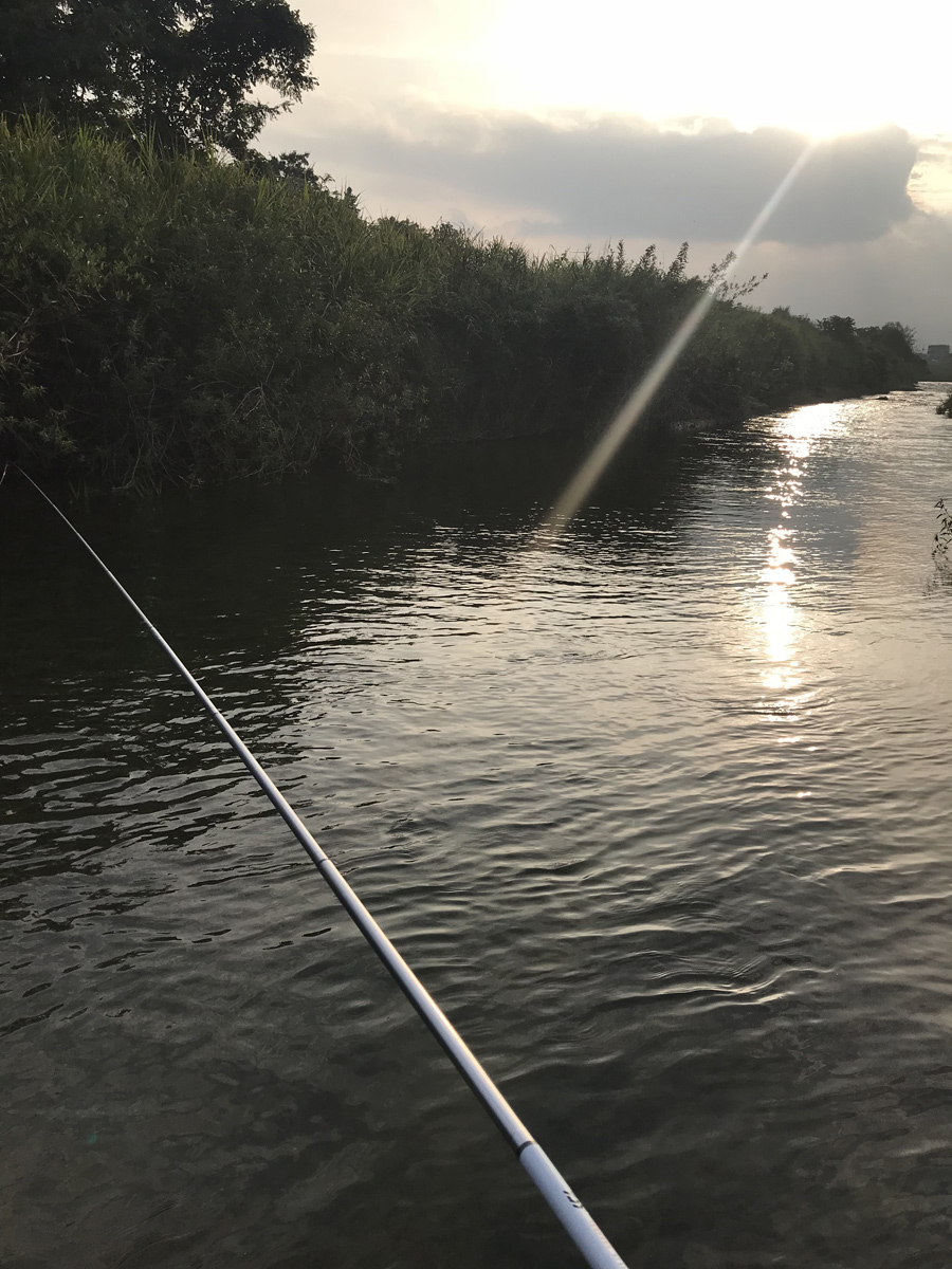 家に帰って前の川で暗くなるまで釣れない釣り。