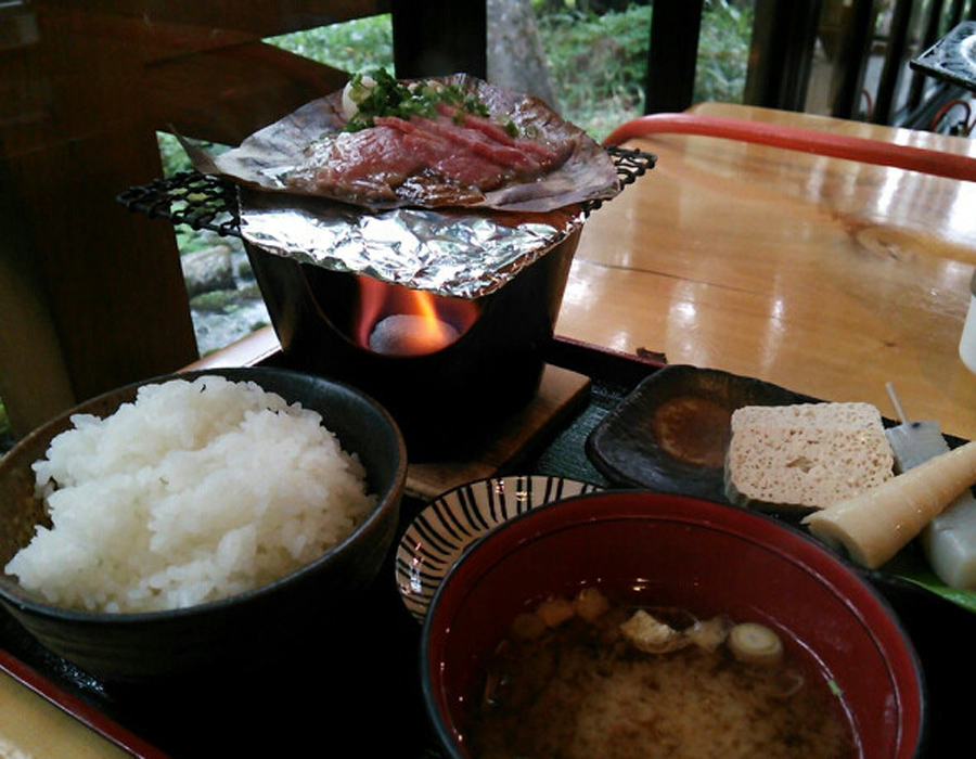 そして最高に良い湯の後は、最高の飯を。という事で飛騨牛の朴葉味噌焼きを頂きました。