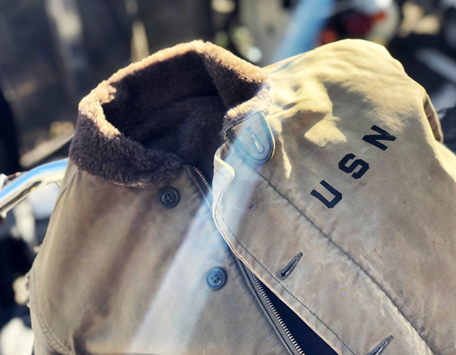 4~5年くらい前に古着屋で購入して以来、冬のバイクには欠かせないアウター。