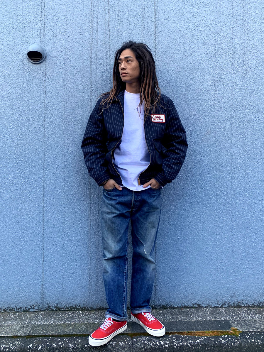 ワークジャケットなので少し大きめにしても雰囲気が出ますよ。