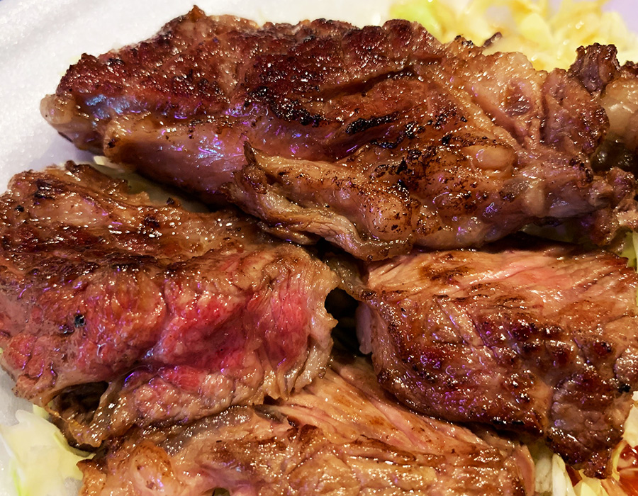 今回は入り口で焼きたてのステーキを買って、店内でビールを買って飲む新年会。