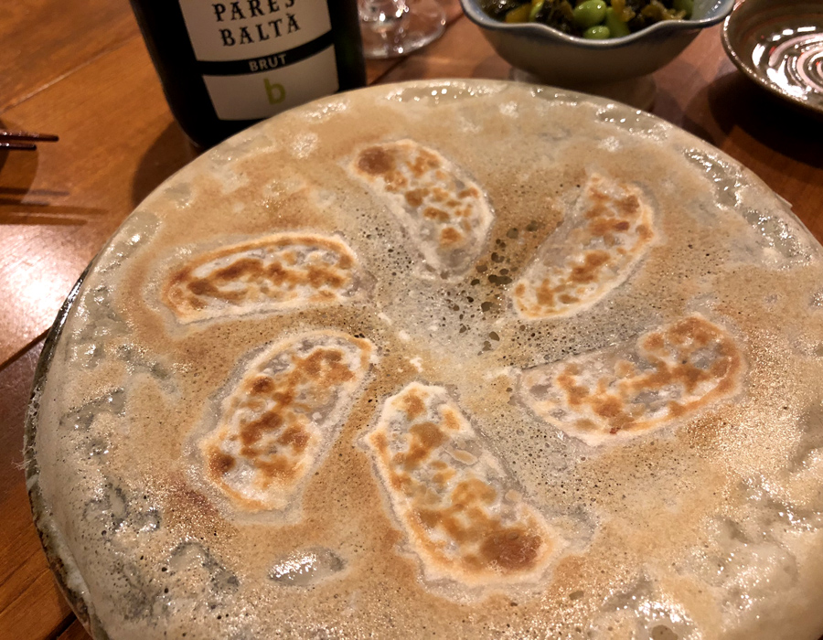3軒目ではスパークリングワインも空け、餃子を堪能。