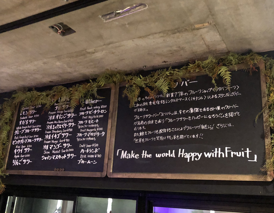 創業70年以上の老舗フルーツ店フタバフルーツが選ぶ季節のフルーツを使った美味しいお酒が楽しめるお店。