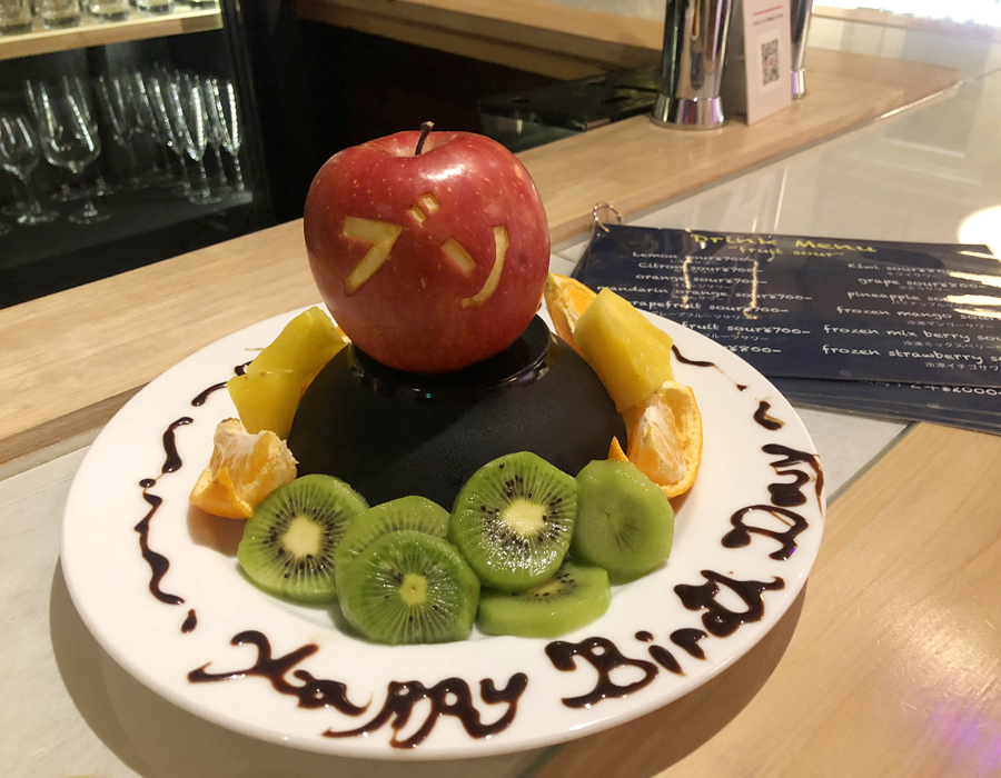 で、この日は友人ぶんちゃんの誕生日祝いを兼ねていたのでお店の方がバースデーフルーツを用意してくれました。