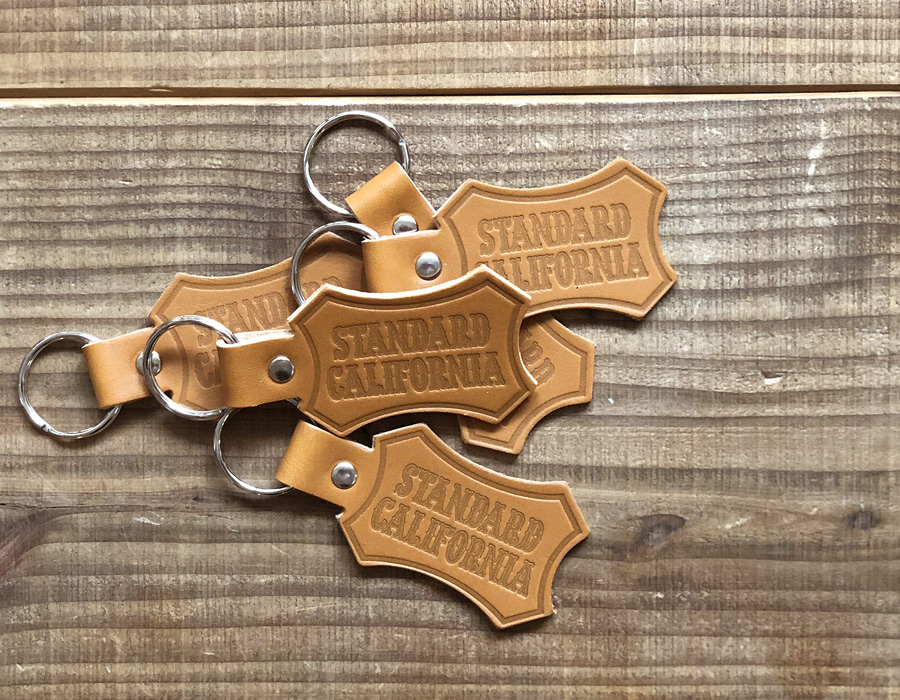BUTTON WORKS製作 “ペコスハード”というタンニンなめしの牛革を使ったロゴキーホルダー。