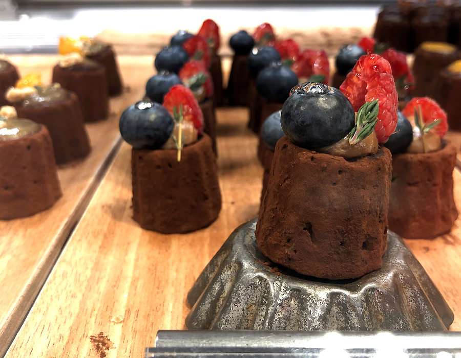 この日は、バタースコッチカカオサンドにベリーをトッピングしたものと、チョコカヌレフォンダンのいちごをオーダー。