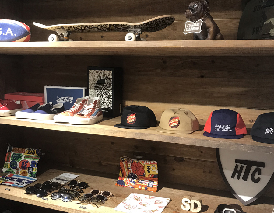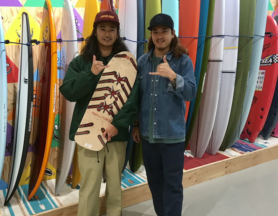 お店はサーフボード・スケートボード・スノーボード横ノリカルチャーがぎっしり詰まったかっこいいお店でした。