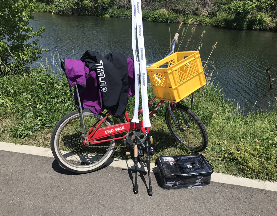 自転車で釣り竿持って。小学生からやっていることが変わらない・・・