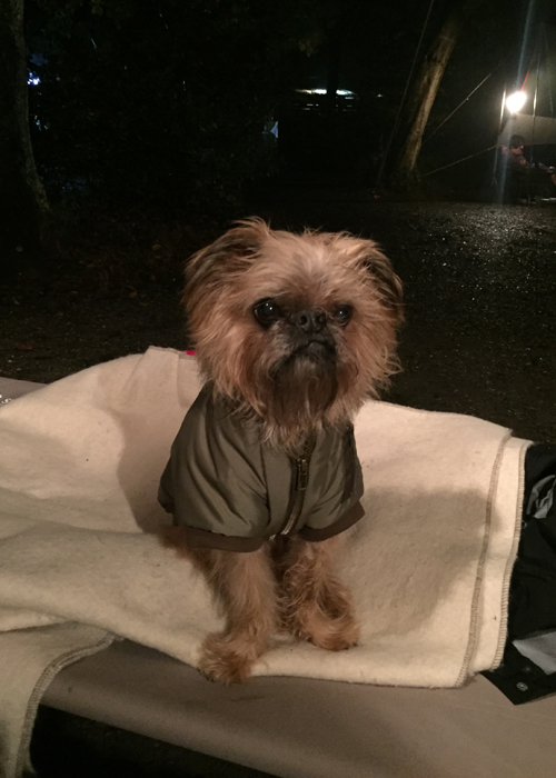 SAMBAは寒いので似合わない洋服を着て固まってます。