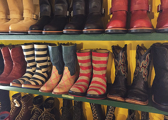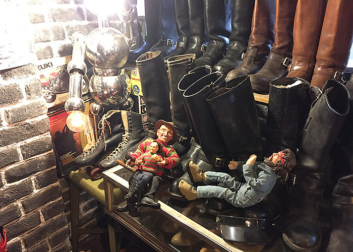 ブーツリペアショップなのですがオーナー私物のビンテージのエンジニアブーツや一癖あるブーツなど展示してありました。