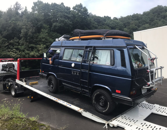 トンネルで3回もエンジンストールを繰り返し、最後はエンジンが掛からなくなってしまった。ヴァナゴンで何度もロングドライブをしてきたのに九州に入った日に動かなくなりました。