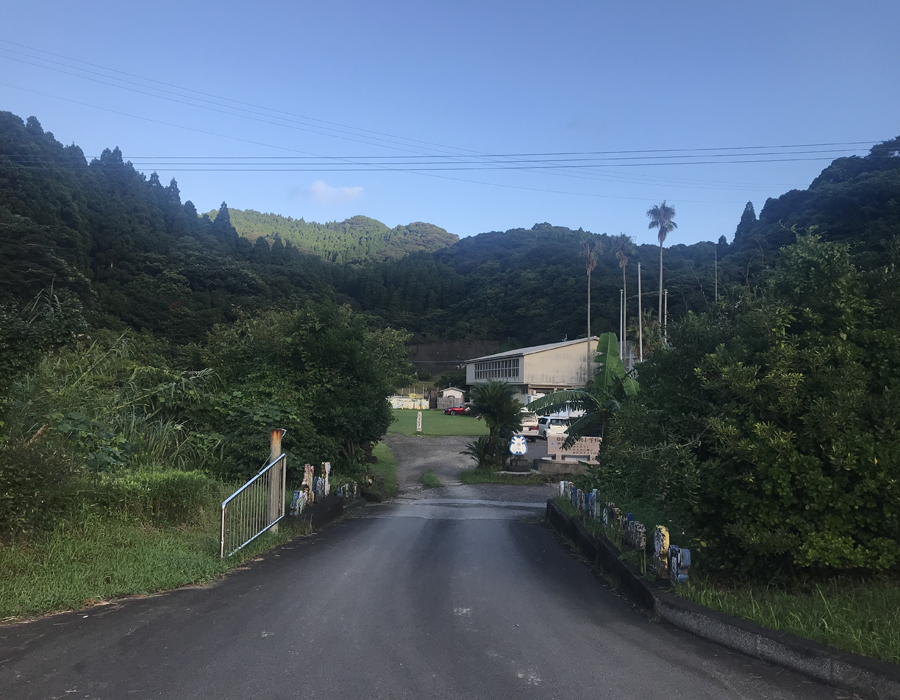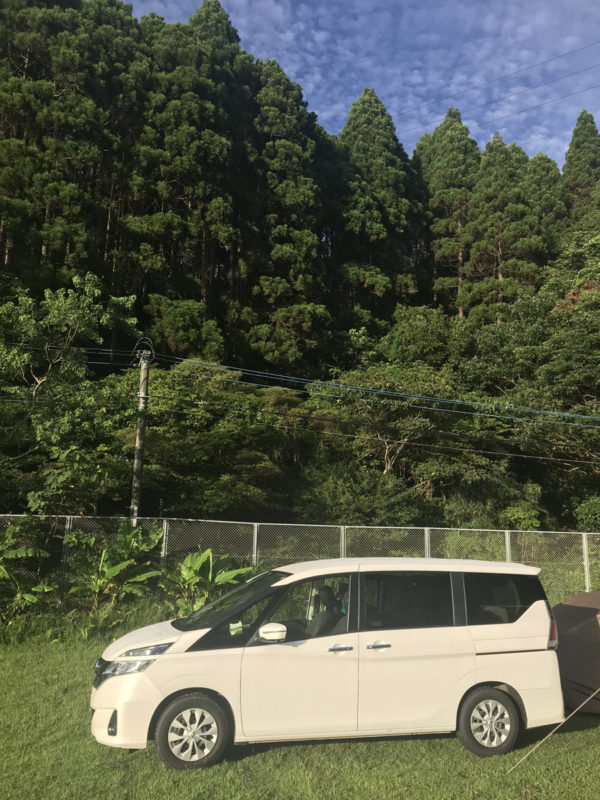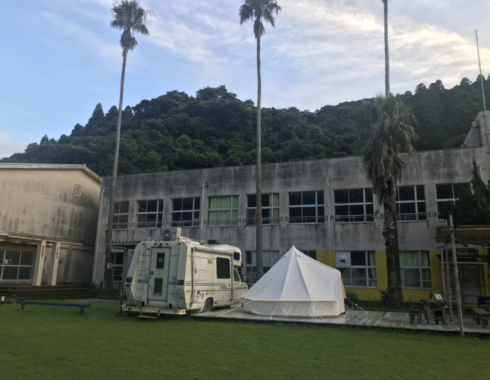 日南まで南下して廃校になった小学校の校庭でキャンプ。