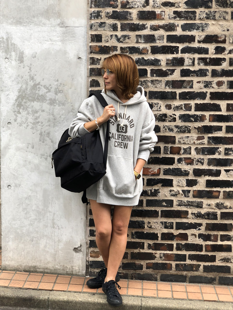 高級綿ピマコットン100%のスウェットが軸のコーデ。