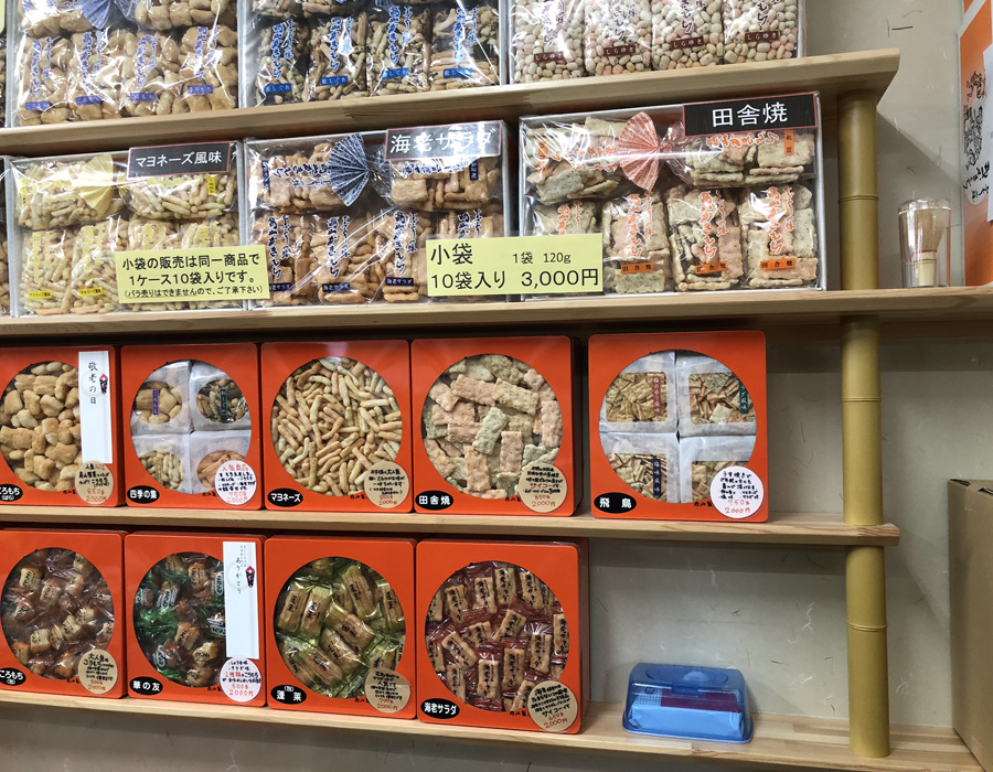 おかきの出来上がる様子を見て良い香りを嗅いでしまったら、買わないわけにはいかないやつ。