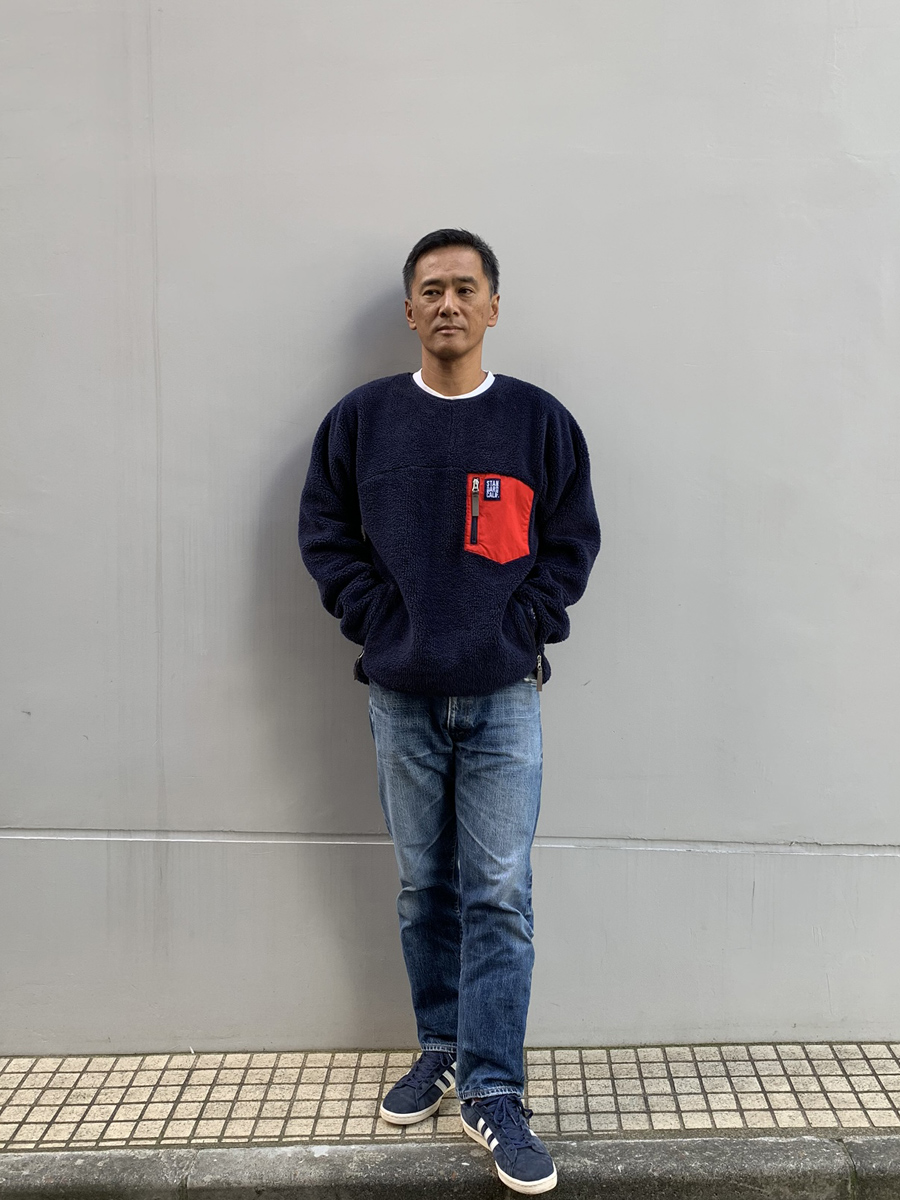 これと同じ生地でベスト、ジップフードと発売しますがこのクルーのプルオーバーはスウェットでは少し寒そうなときのアウターとして。