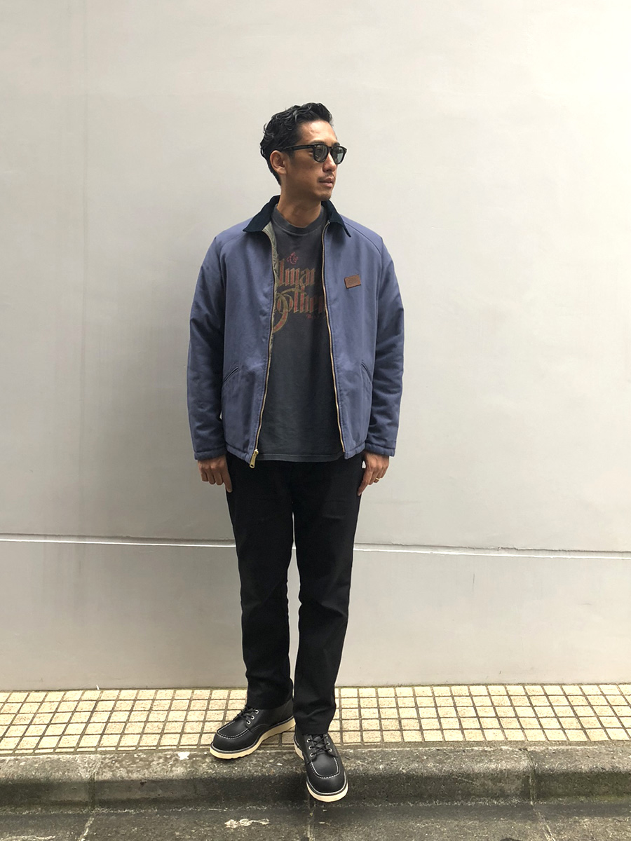 今回は少し大人っぽくブラウンのワークパンツに足元はWallabeeを合わせました。