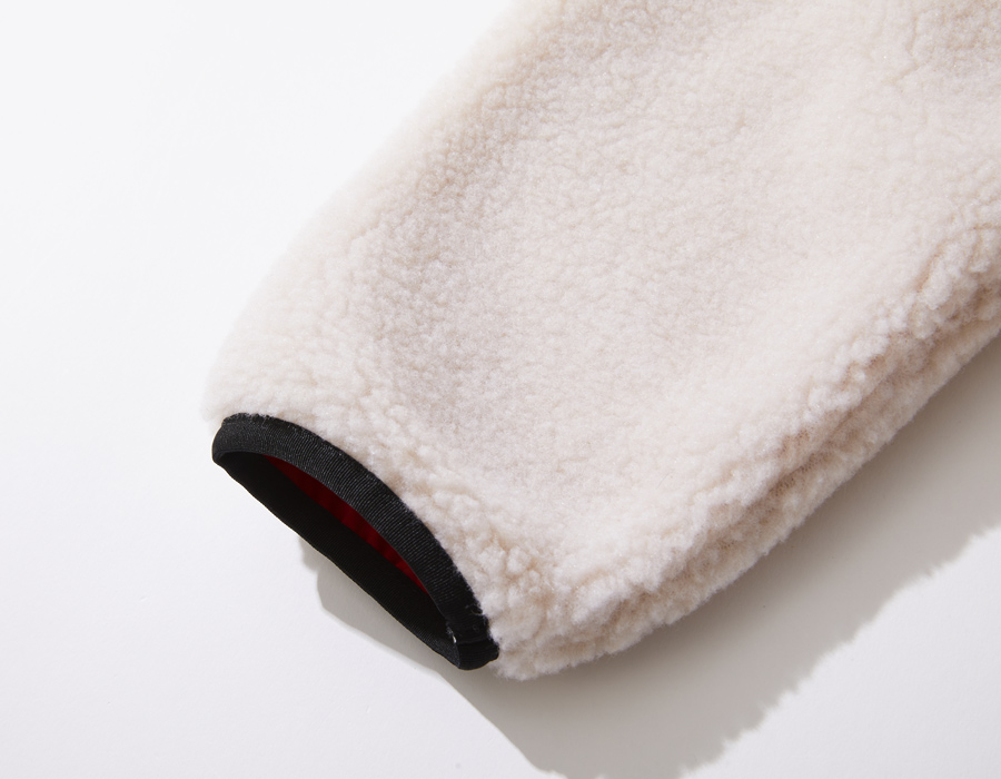 ボリュームとハリのある素材は滑らかで、裏地に高密度のスムーズ生地を組み合わせて防風性を追求。