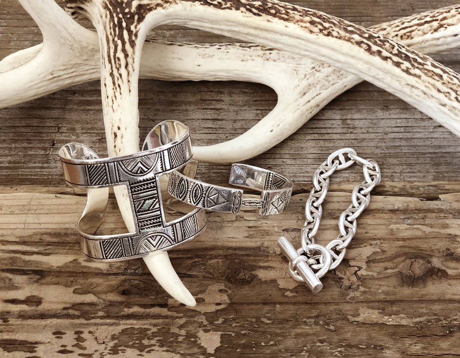 左のバングルは2点ともアフリカの遊牧民 トゥアレグ族によるもの。