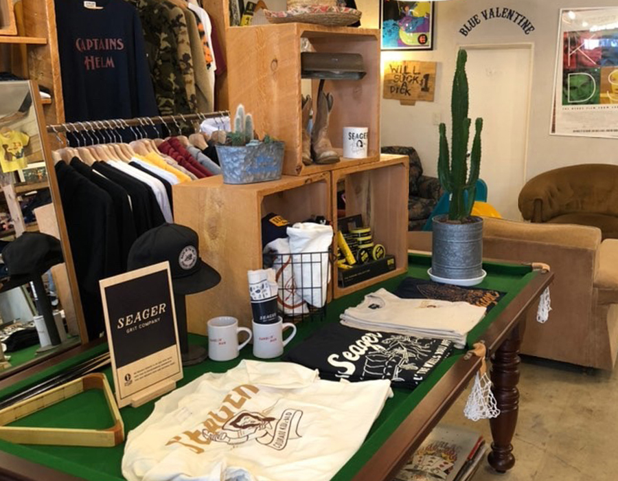 アメリカンな内装にカリフォルニアを感じられる店内にはオーナーの拘り抜かれたセレクトアイテムが所狭しと。