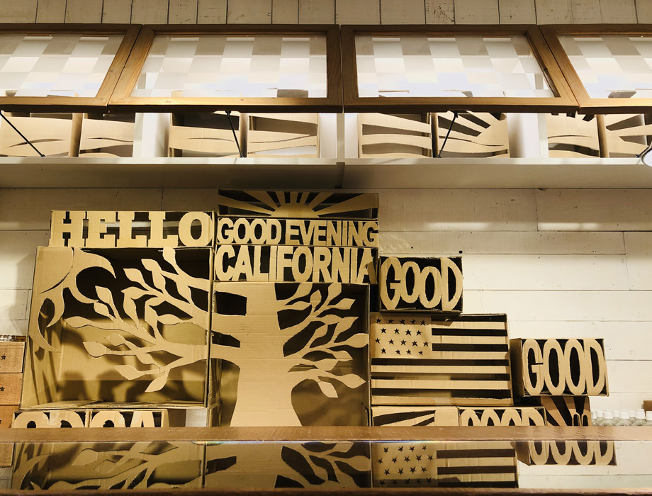 2020ssのシーズンテーマ「GOOD EVENING CALIFORNIA」を今回は段ボールアートで表現してみました。