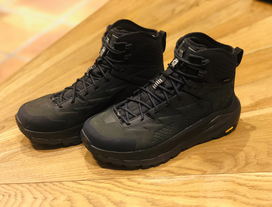 街はもちろん雪山や釣り場で履いているHOKA ONEONE “KAHA GTX”。