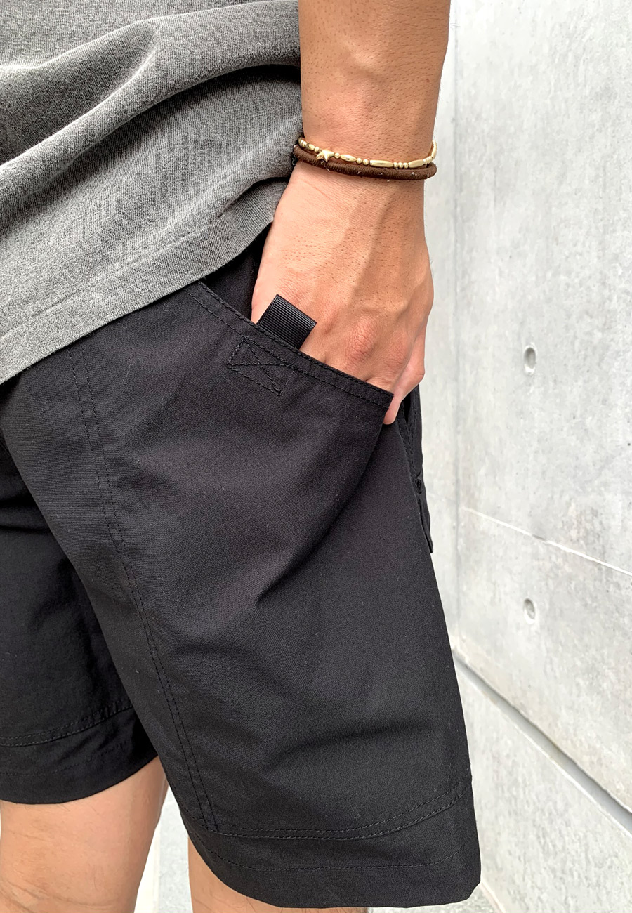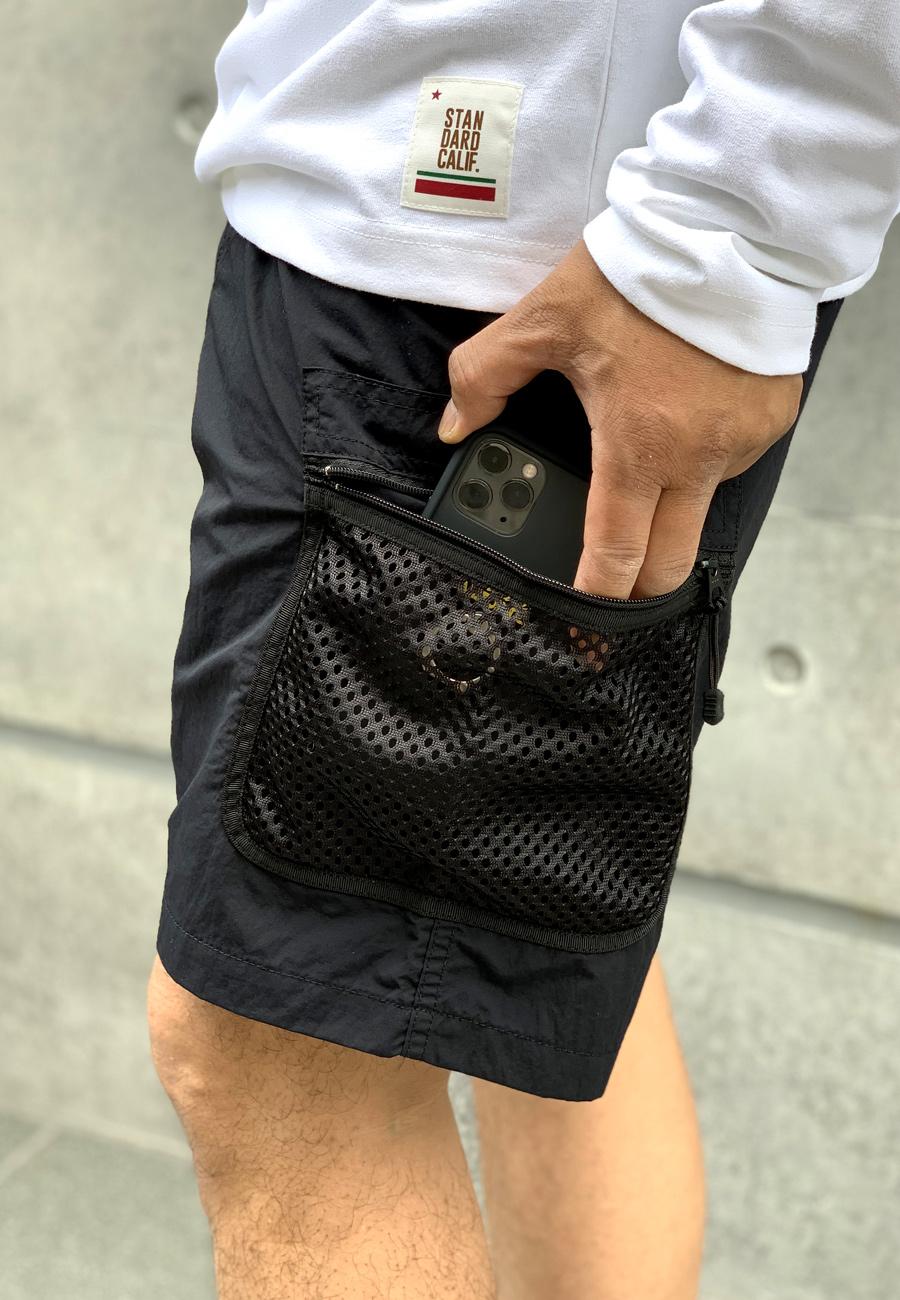 特にこだわったのはメッシュのカーゴポケット。例えば水遊びする際の水捌けは最高。あと車を運転する際にここに携帯を入れておくと邪魔にならなくてイイんですよ。シンプルなデザインにポイントとなるメッシュポケットがアウトドアらしくもあり、もちろん町履きとしても問題無しです。