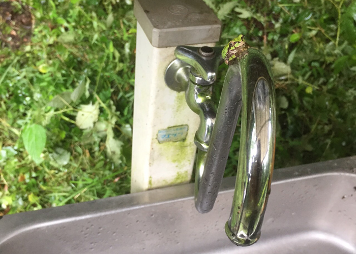 木々に囲まれリフレッシュ。なかなか冷たい。