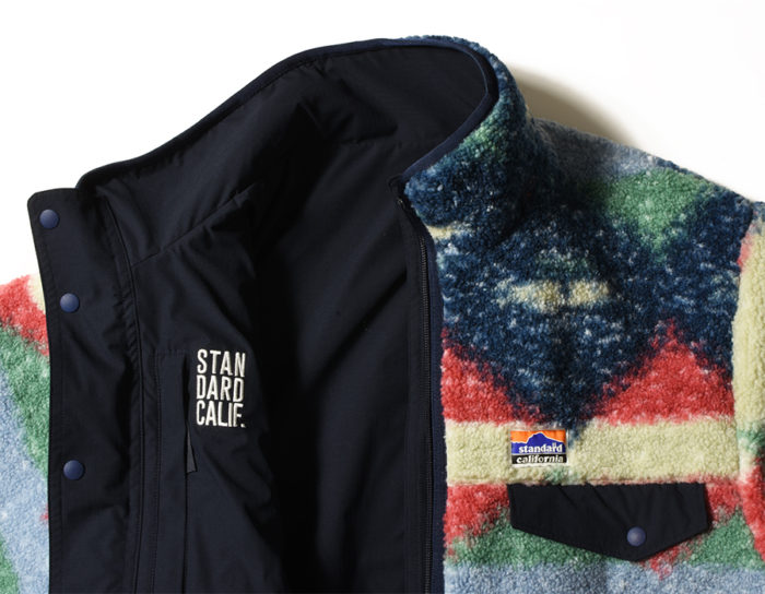 好評のフリースアイテムはソリッドタイプのボアフリースに加えて、ヴィンテージのサウスウエスト柄のブランケットをイメージしたオリジナル柄の2タイプ。
