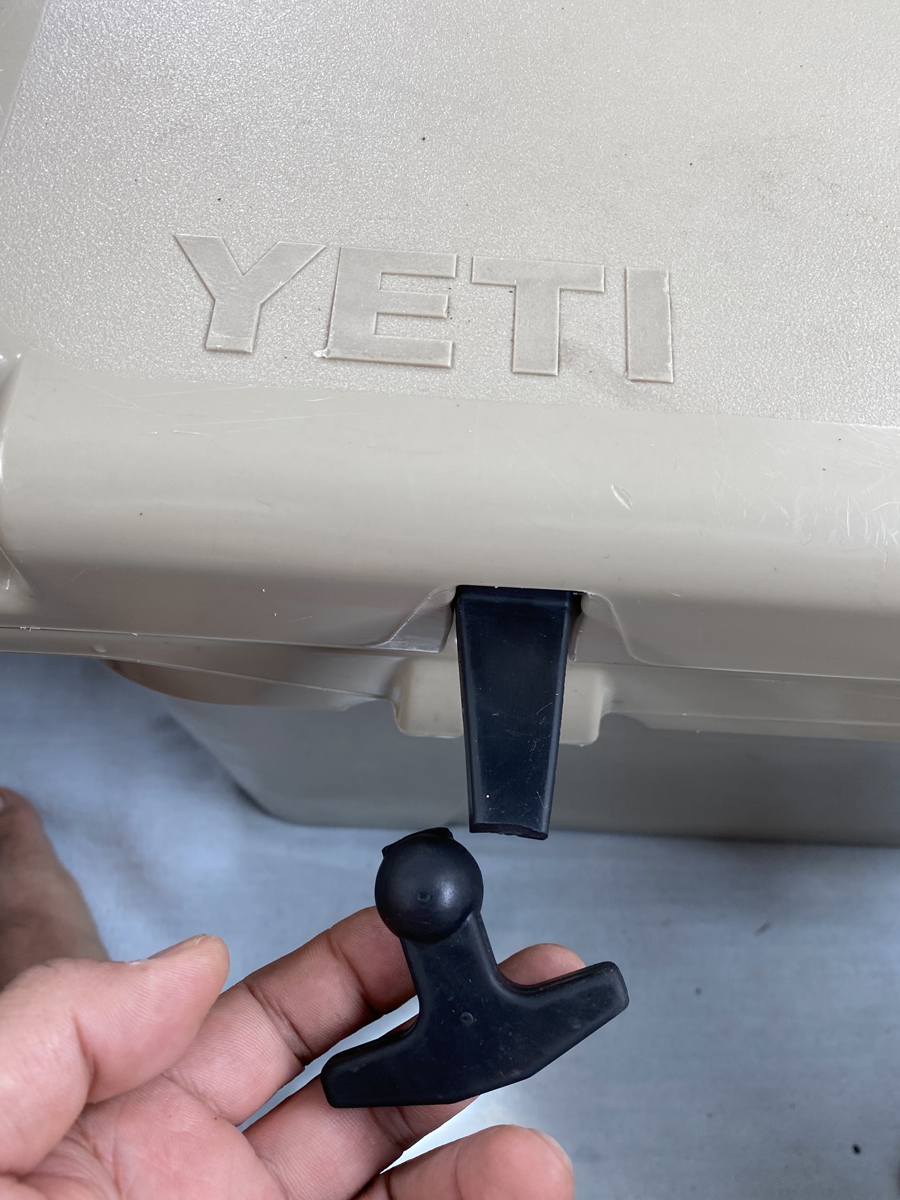 お気に入りのYETIのクーラーボックスのゴムのラッチが切れてしまったのでパーツを購入して交換。