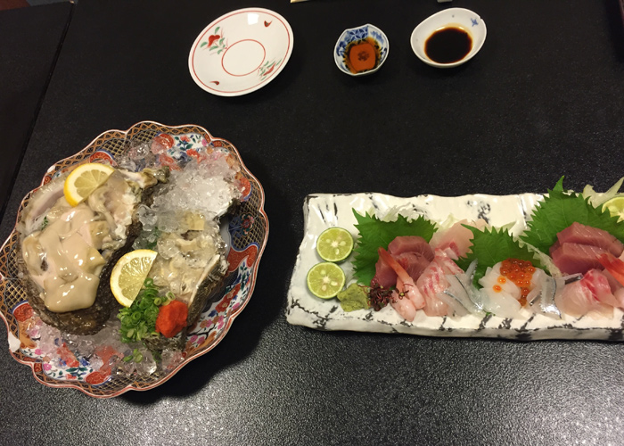 夜はこの日も新鮮な魚と巨大岩ガキ!