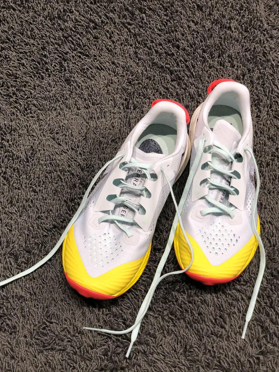 今までは家にあったNIKEのAIR MAXを履いていましたが、丘陵地にある公園を歩くことも多いので、歩きやすさを重視しトレイルランニング用の「NIKE AIR ZOOM TERRA KIGER 6」を購入。