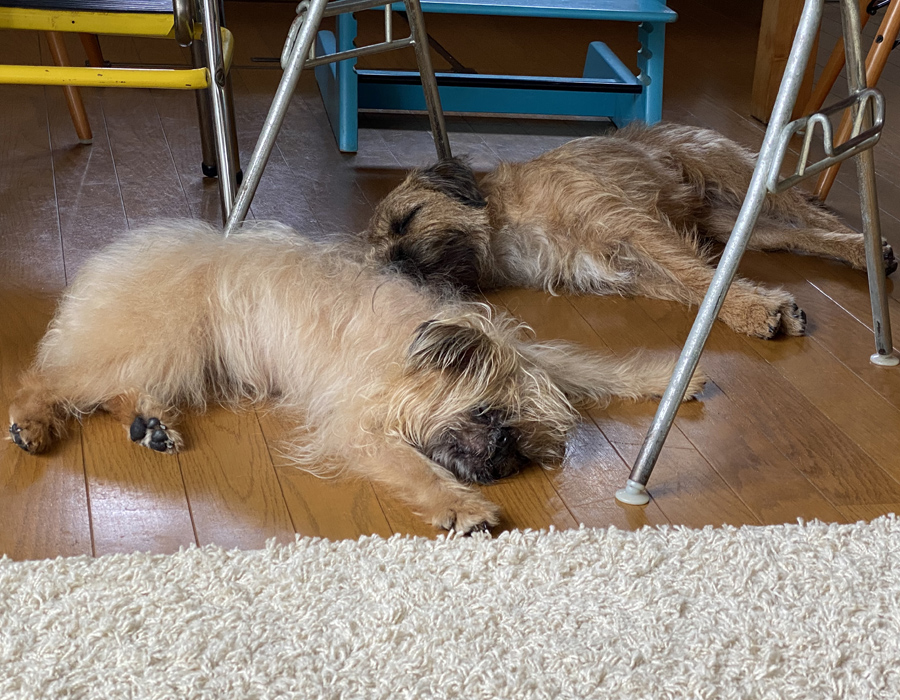 犬たちはまだ涼しいスペースに居ますがもうじき定位置が変わります。