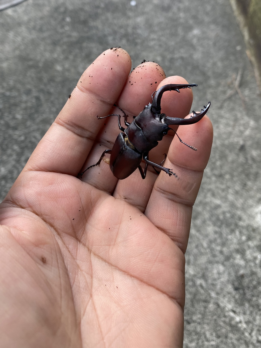 林の中では樹液が出ている木を見つけ通るたびにノコギリクワガタを捕まえて観察後にまた木に戻すを何回も繰り返しました。