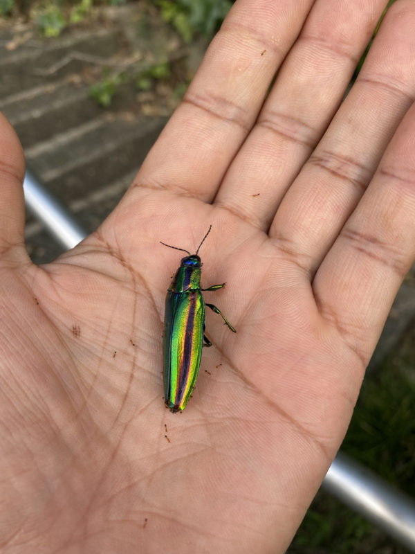 久しぶりの玉虫は夏の終わりで弱っていました。