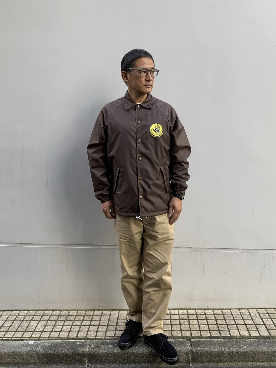 そんなコーチジャケットも今回はブラウンカラーをチョイスすることで柔らかな印象に。