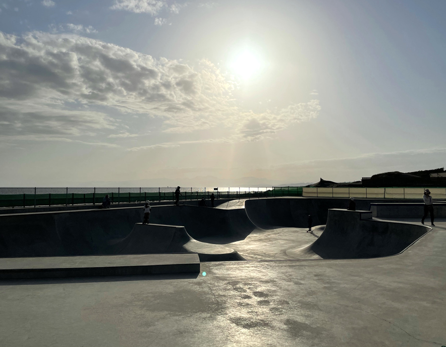 電車で鵠沼海岸駅まで行き、そこからプッシュで鵠沼のスケートパークまで。