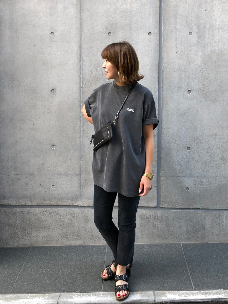 ベースのTシャツは今期人気のピグメント染めなので落ち着いたカラーで古着のような見た目が気に入っています。