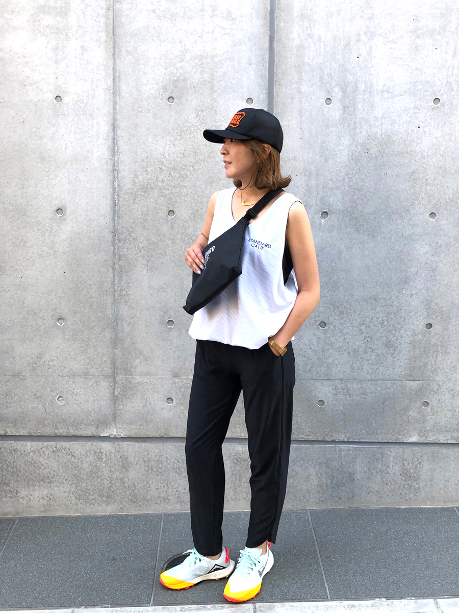 今回はpatagoniaのストレッチ性の高いパンツとオールメッシュキャップと合わせて。