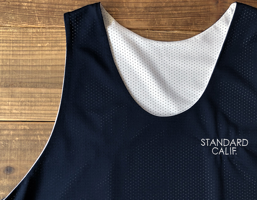 素材に伸縮性、通気性に優れたポリエステル素材のメッシュ地を使ったリバーシブルタンクトップ。