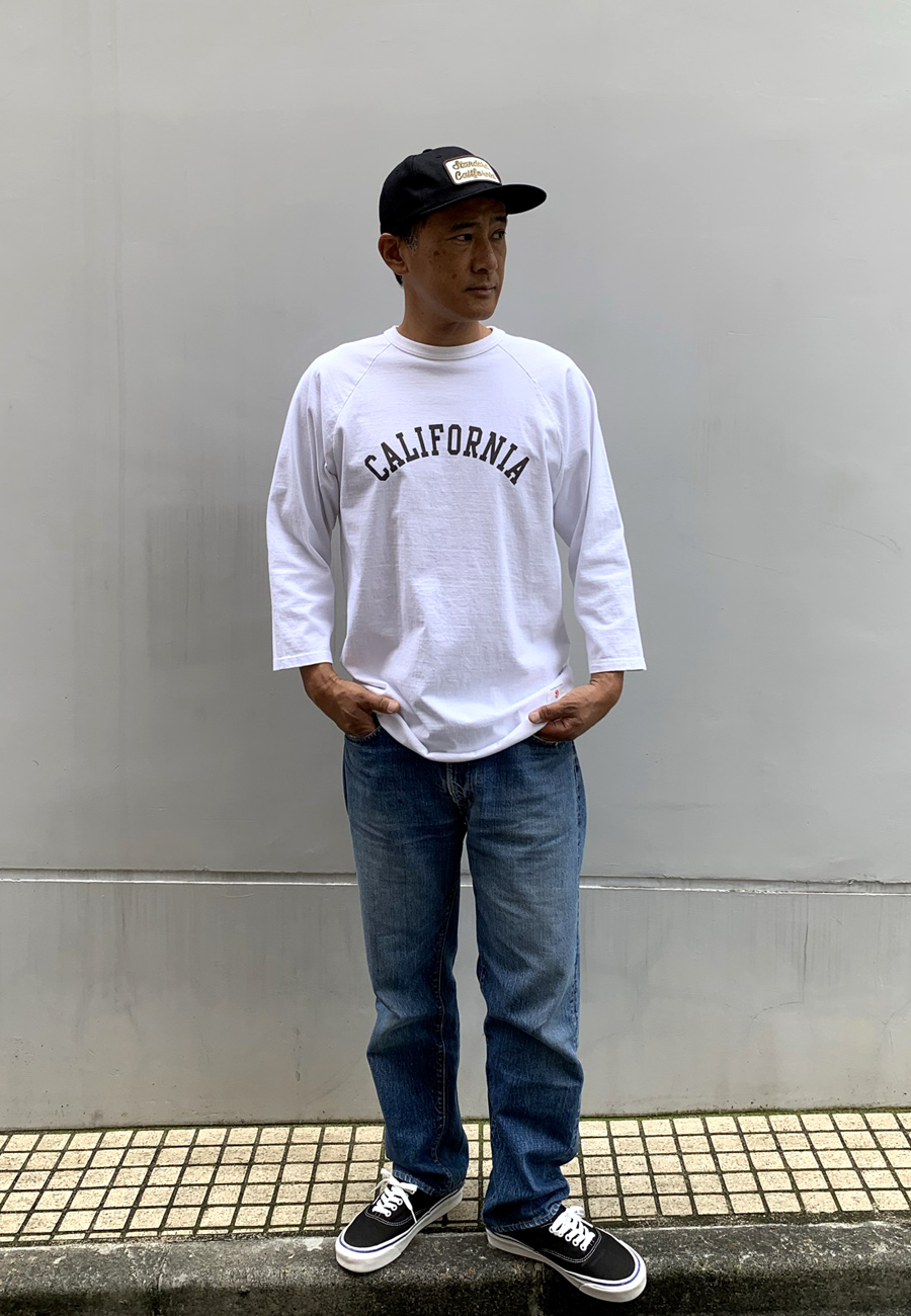 ここ数年、お客様にも好評で自分自身も着用頻度の高いオリジナルのヘビーウェイトTと同じ生地でベースボールTを作りました。