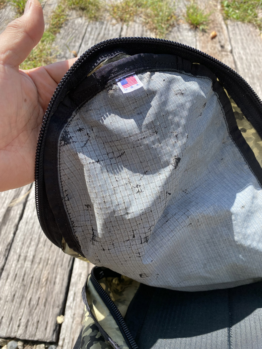 古いアウトドア用のナイロンバッグを持っている方は経験していると思いますが匂いが凄いことになってます!