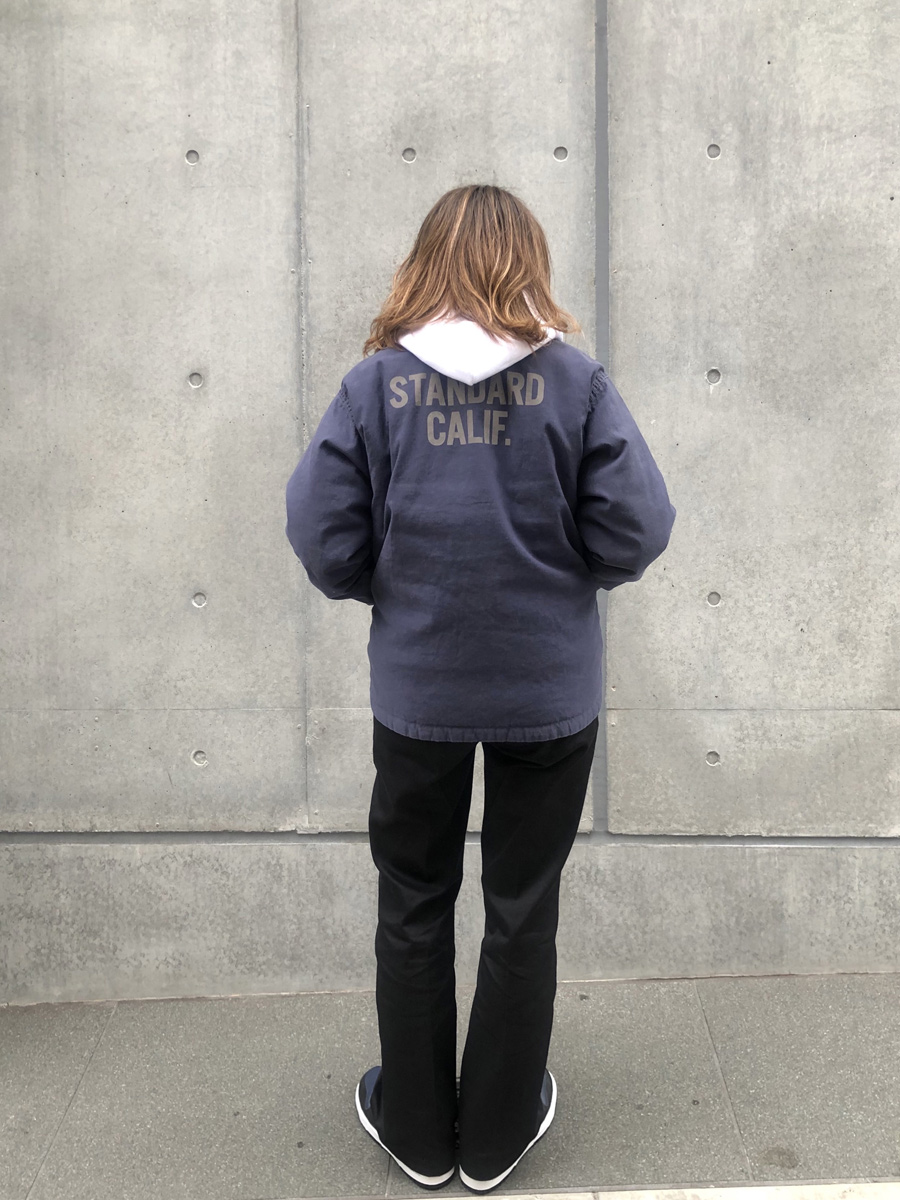 今回はMサイズのジャケットをDickiesのボトムに合わせてメンズっぽくスタイリング。